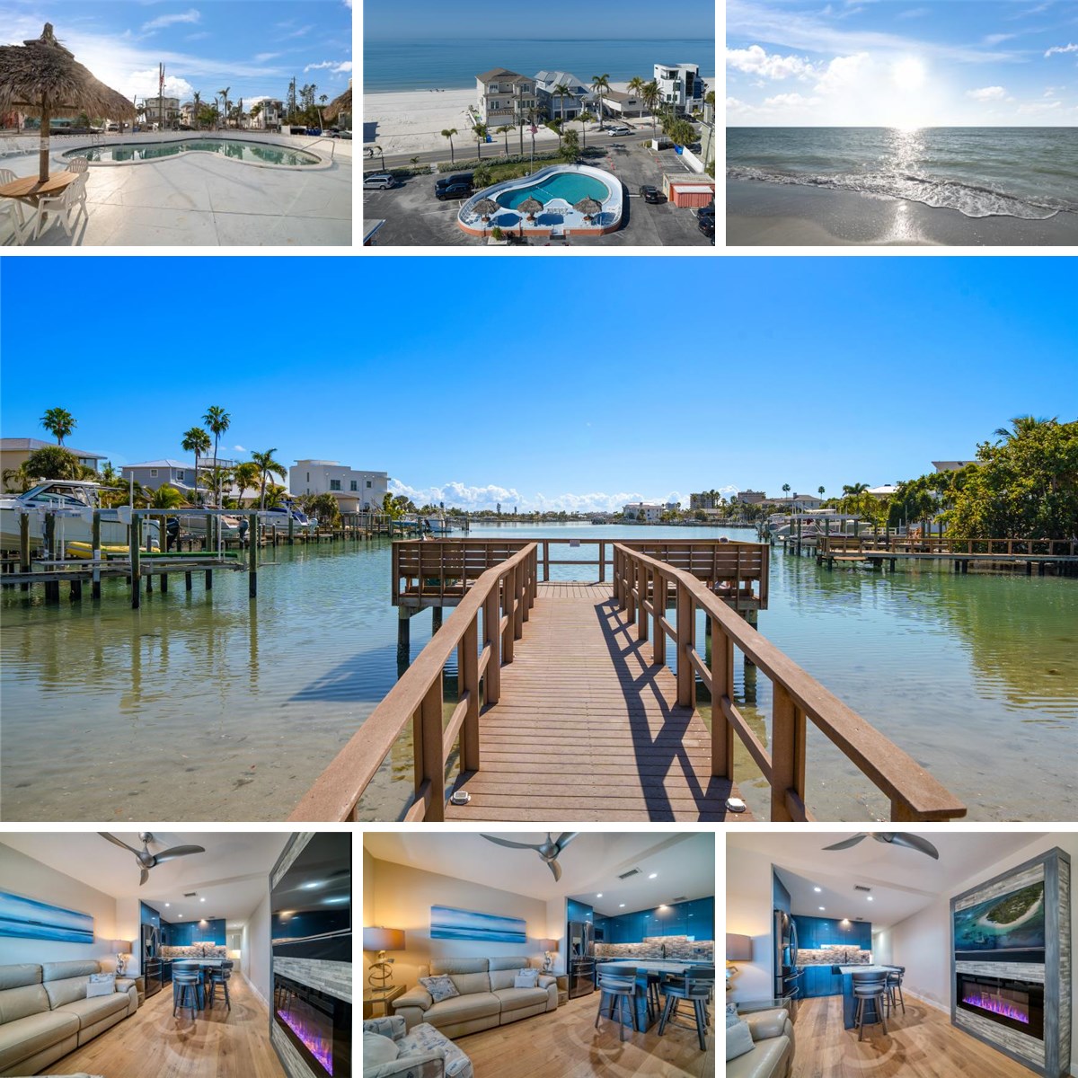 Custom Designed & Renovated Sunset Beach Waterfront Condo with Water views, Heated Pool, Fishing Dock & Beach Access. Turn-Key vacation home conveys fully furnished & equipped. This gorgeous 2nd Floor Unit is move-in ready! Condo has been completely remodeled with tasteful choices. Upon entering you will love the wide-plank Monarch engineered wood flooring throughout. The renovated kitchen features Quartz counters, solid wood blue touch open cabinetry with soft-close drawers, slate & stone backsplash, under-counter lighting, black stainless steel Samsung appliances, convection oven & microwave, Italian Fireclay double farm sink, Delta touch faucets, eat-in bar area, custom bar stools, pullout spice racks & more. Continue to the Custom bathroom to find wood cabinets, rain showerhead & stylish tub surround with glass doors. On the water side of the condo you will find the bedroom retreat with water views, Built in cabinetry with Smart TV, custom bedside tables with bedside sconces. Additional features include glass doors, Nuvo citrus-based water softener, recessed lighting, dimmers throughout, open floor plan and an electric fireplace to add to the ambiance. Refer to the photographs to see all of the gorgeous upgrades. Situated on Blind Pass Waterway & Directly across from the Beach with Private beach access. Enjoy the best of both worlds on the Beach & the Bay at an affordable price. What more could you ask for? Sunset Cove amenities include Waterfront picnic area, fishing dock, pool, laundry facility & private beach access. HOA fee includes water, sewer, trash, cable & internet. 7 Day Rental Minimum. No Pets allowed. Sunset Cove is THE most affordable condo with the MOST Amenities on Sunset Beach. What are you waiting for? Time to Dive Into your new Sunset Beach Lifestyle!
